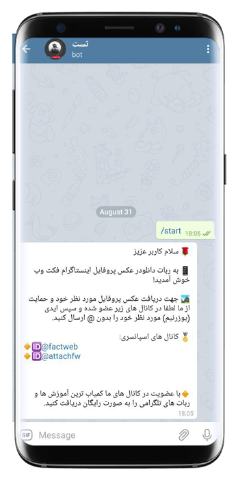 روش کار ربات هم به این صورت است که برای دانلود عکس پروفایل موردنظر خود کافیست تنها ایدی یا همان یوزرنیم کاربری فرد مورد نظر را برای ربات ارسال کنید تا در کوتاه ترین زمان آن را با بالاترین کیفیت موجود دریافت و دانلود کنید.